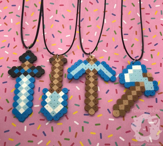 Perler Minecraft Diamond Tools Necklaces Etsy